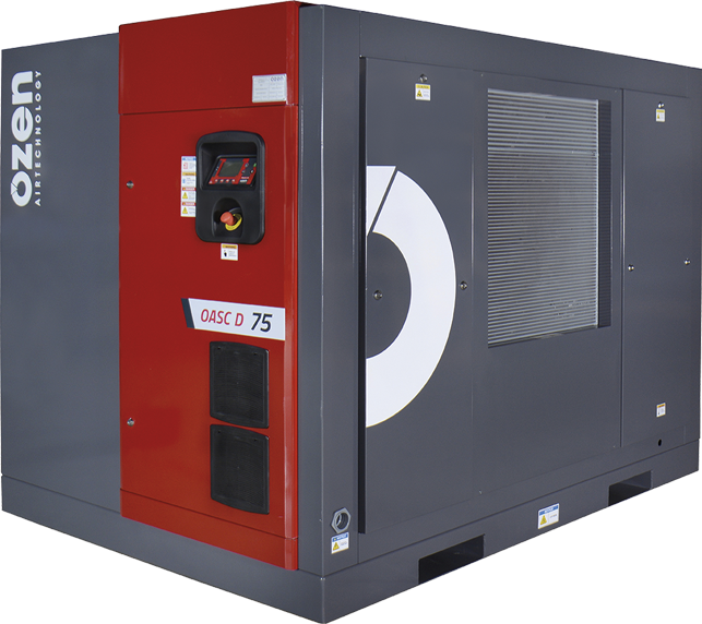The OASC D series direct coupled screw compressor series with frequency inverter is designed to offer high efficiency under the tough conditions of the industry. With its wide range of products, the series offers solutions suitable for the needs of different processes from textile to automotive, and from appliances to the pharmaceutical industry, all of which provide energy savings of up to 35% thanks to the frequency inverter. The innovative design, with the direct connection of the screw block with the electric motor, reduces energy costs. The series, which minimizes the total cost of ownership, ensures that production continues efficiently.